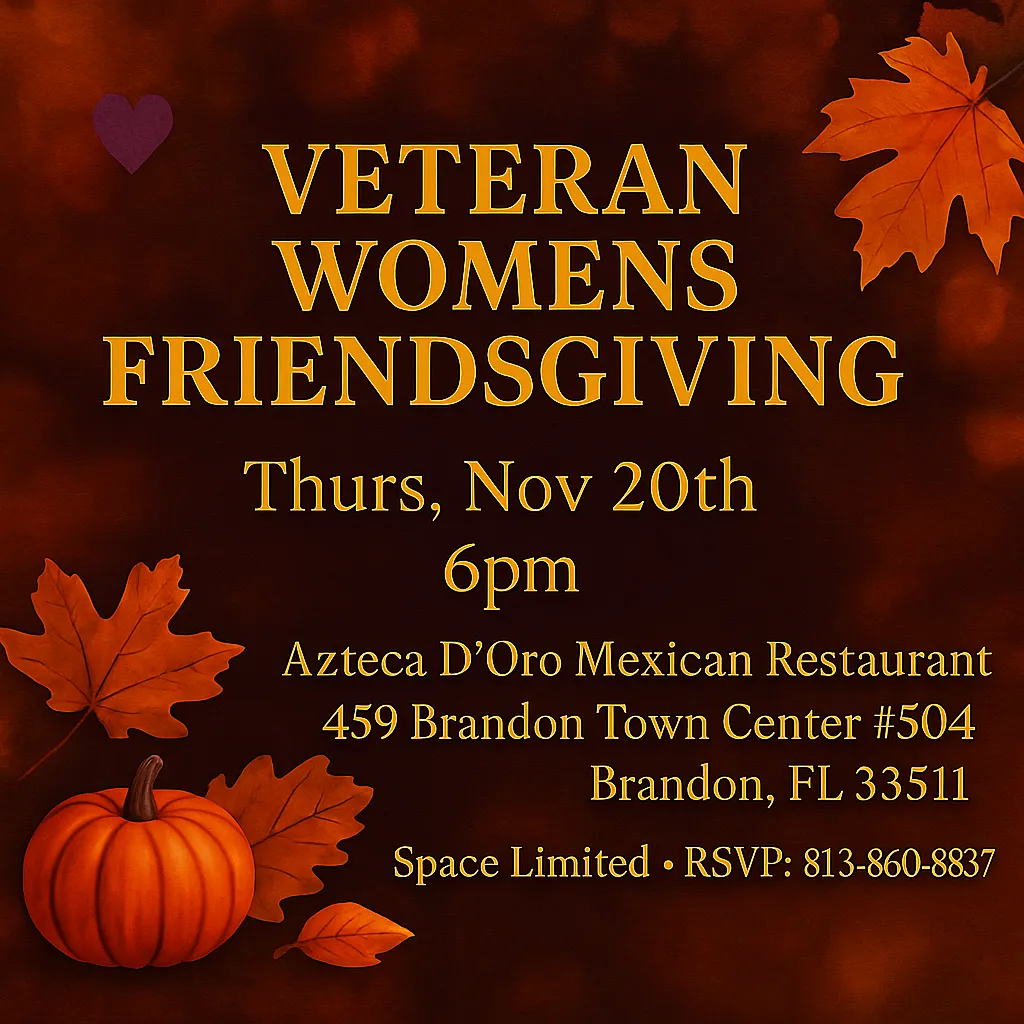Discover local events, partner programs, and gatherings shared by veteran women throughout the Tampa Bay area and beyond. 💜